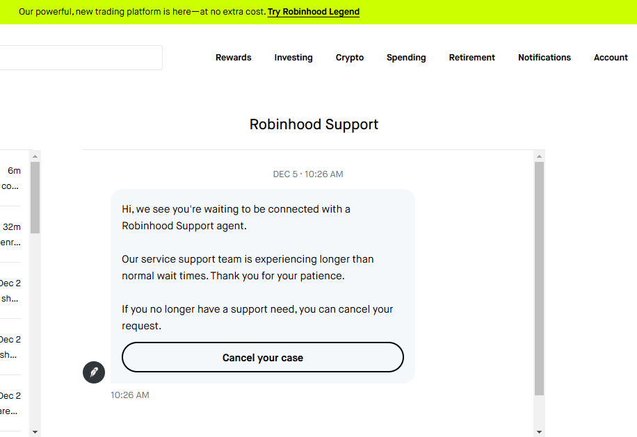 Update on December 10, 2024: All I can do is shake my head. About 24 hours after writing this post — and multiple weeks of no response on my own — I suddenly get a live chat rep immediately after one message, an email to ask me what I do and don’t like about Robinhood, and an email confirmation that my IRA account was finally closed. Maybe it’s coincidental. All I know is I shouldn’t have had to write this to get Customer Service reps to respond to me. Whatever works, I suppose.