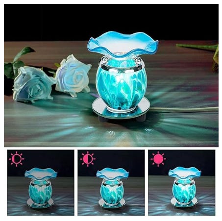 This glass electric oil warmer has an enchanting color scheme that comes in blue, green, orange, red, white and purple.